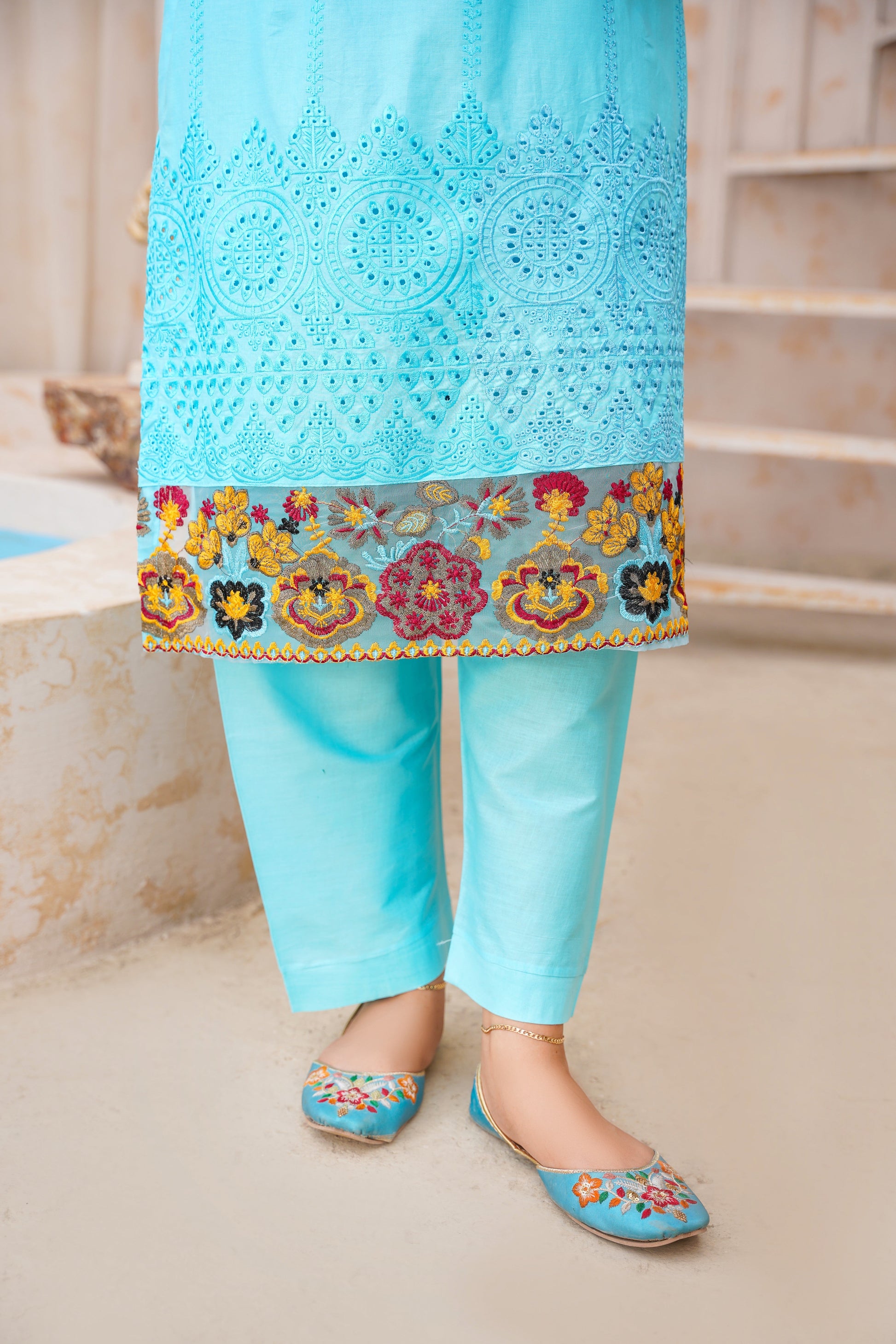 🧺 Iron on Low Heat inside out to protect the embroidery detailing.✨ Elevate your style with the BELLE Stitched 2PCS—where tradition meets modern sophistication! ✨